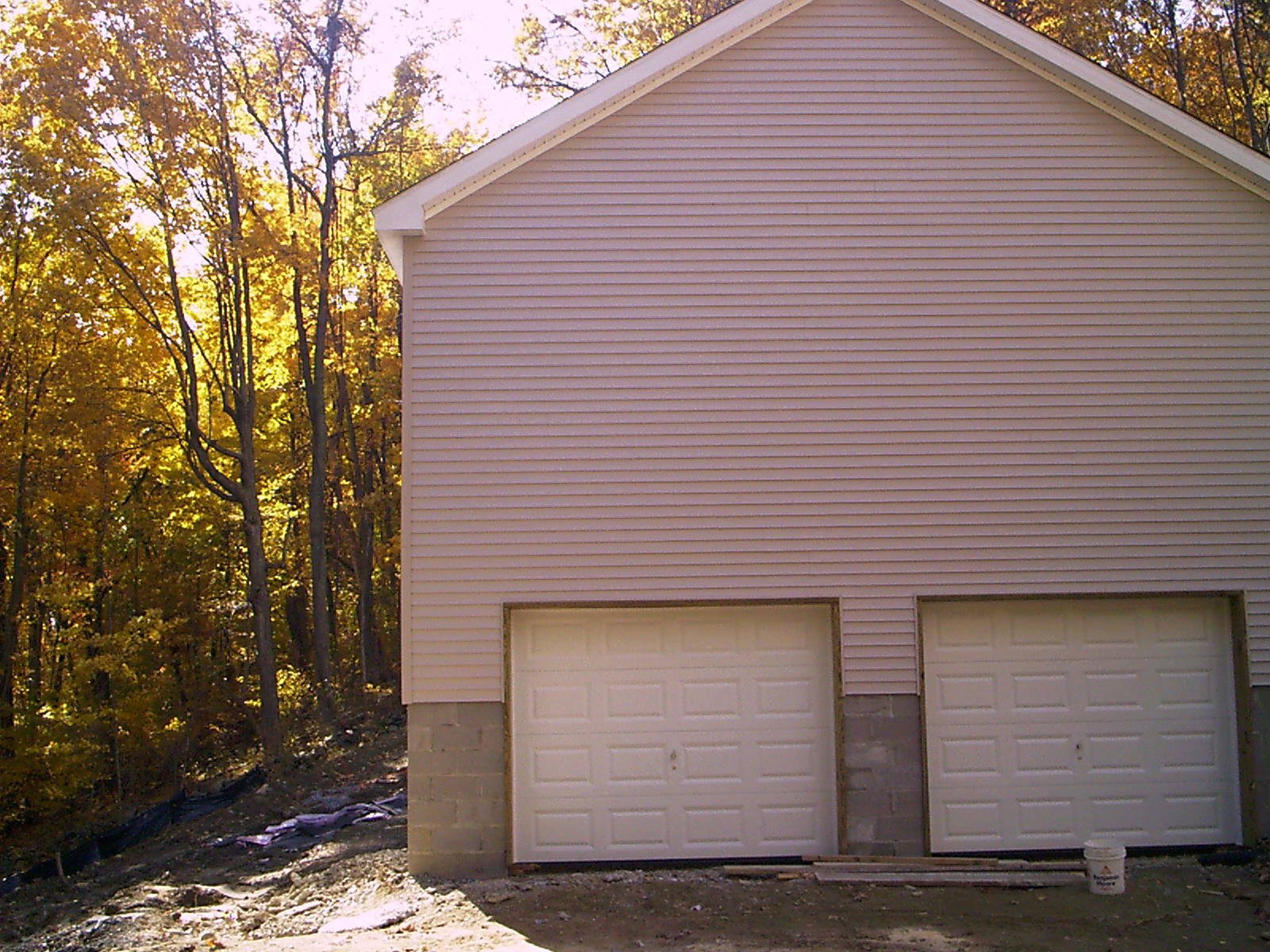 view from lower level slider to garage end of home.