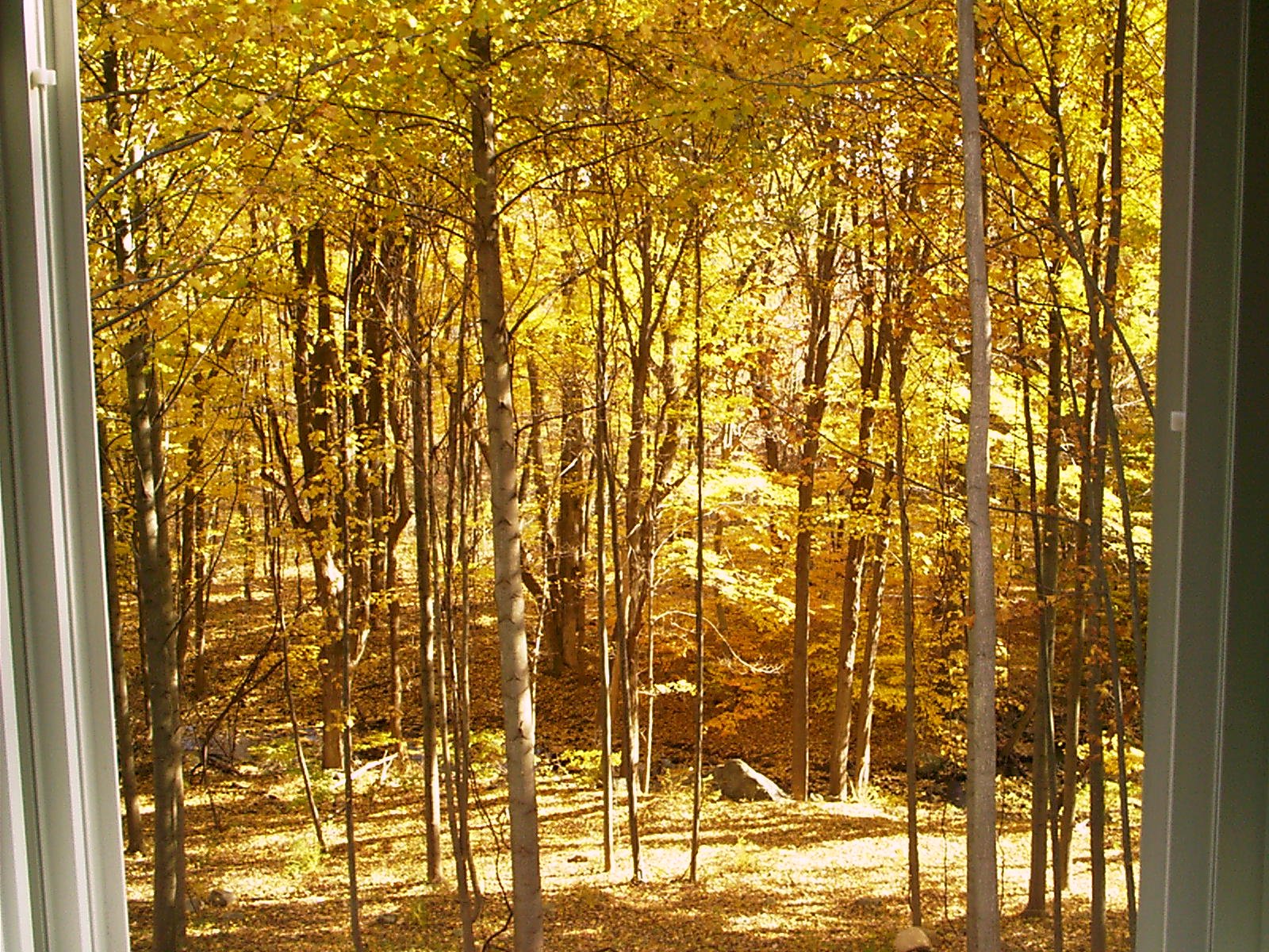 View from dinning room slider with brook in center of photo.