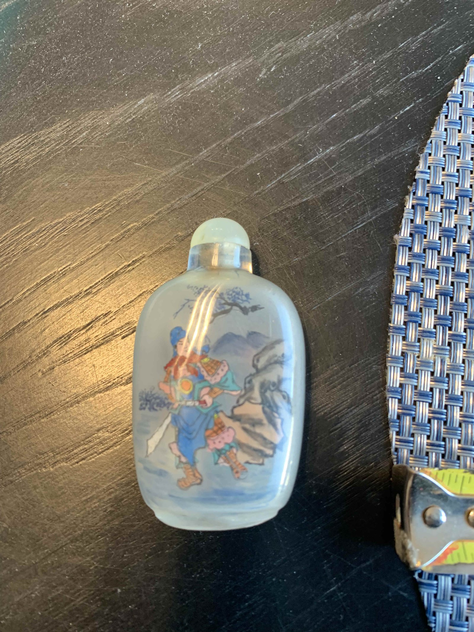 Asian Scene 3 D plate  Asian perfume bottle  Butterfly Chinese Vase hand painted signed makers mark Baoding balls possible cloisonné