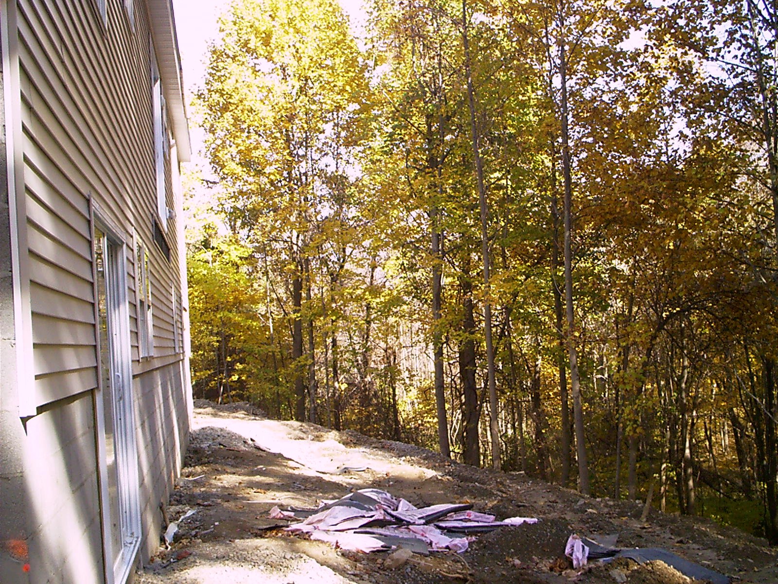 view from lower level slider to garage end of home.