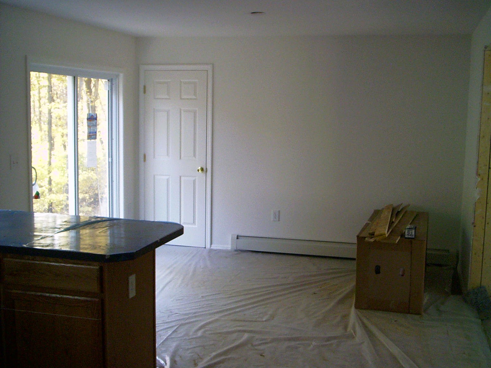 2 windows into kitchen and slider to right in adjoining dinning