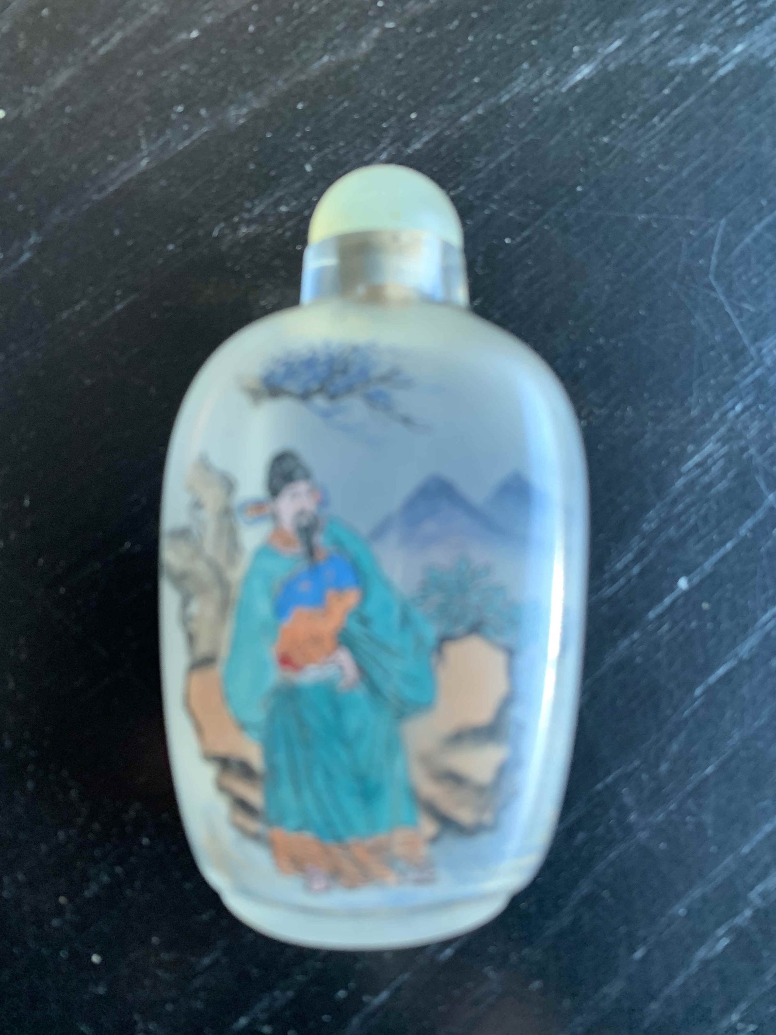 Asian Scene 3 D plate  Asian perfume bottle  Butterfly Chinese Vase hand painted signed makers mark Baoding balls possible cloisonné